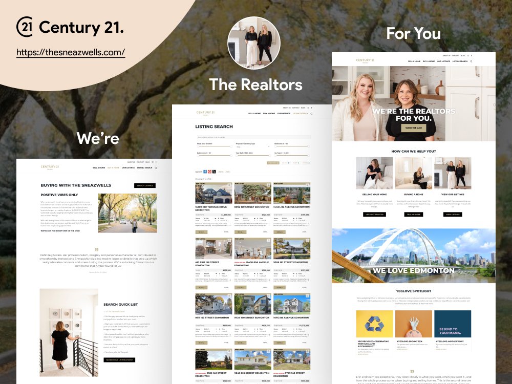 The Sneazwells, a top-producing real estate team under Century 21, needed a branded platform to highlight their listings, personal approach, and local expertise. Built as a custom real estate website, this project included advanced search filters, community spotlights, and lead capture tools to enhance engagement. The site was launched for the Edmonton market and is live at thesneazwells.com.